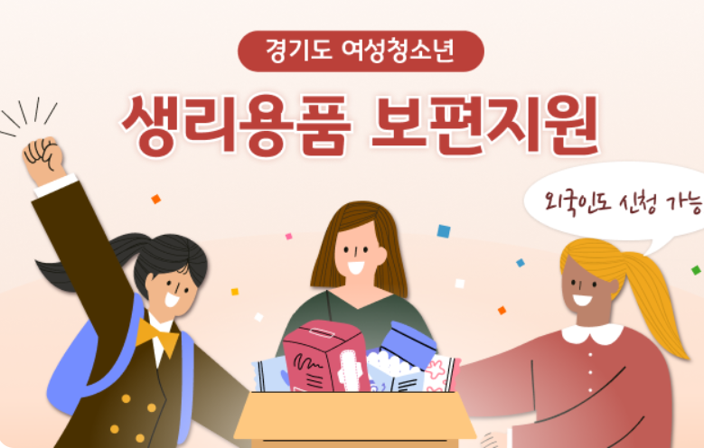 경기도가 7월 15일부터 '2024년 여성청소년 생리용품 보편지원 사업' 2차 온라인 접수를 시작합니다.